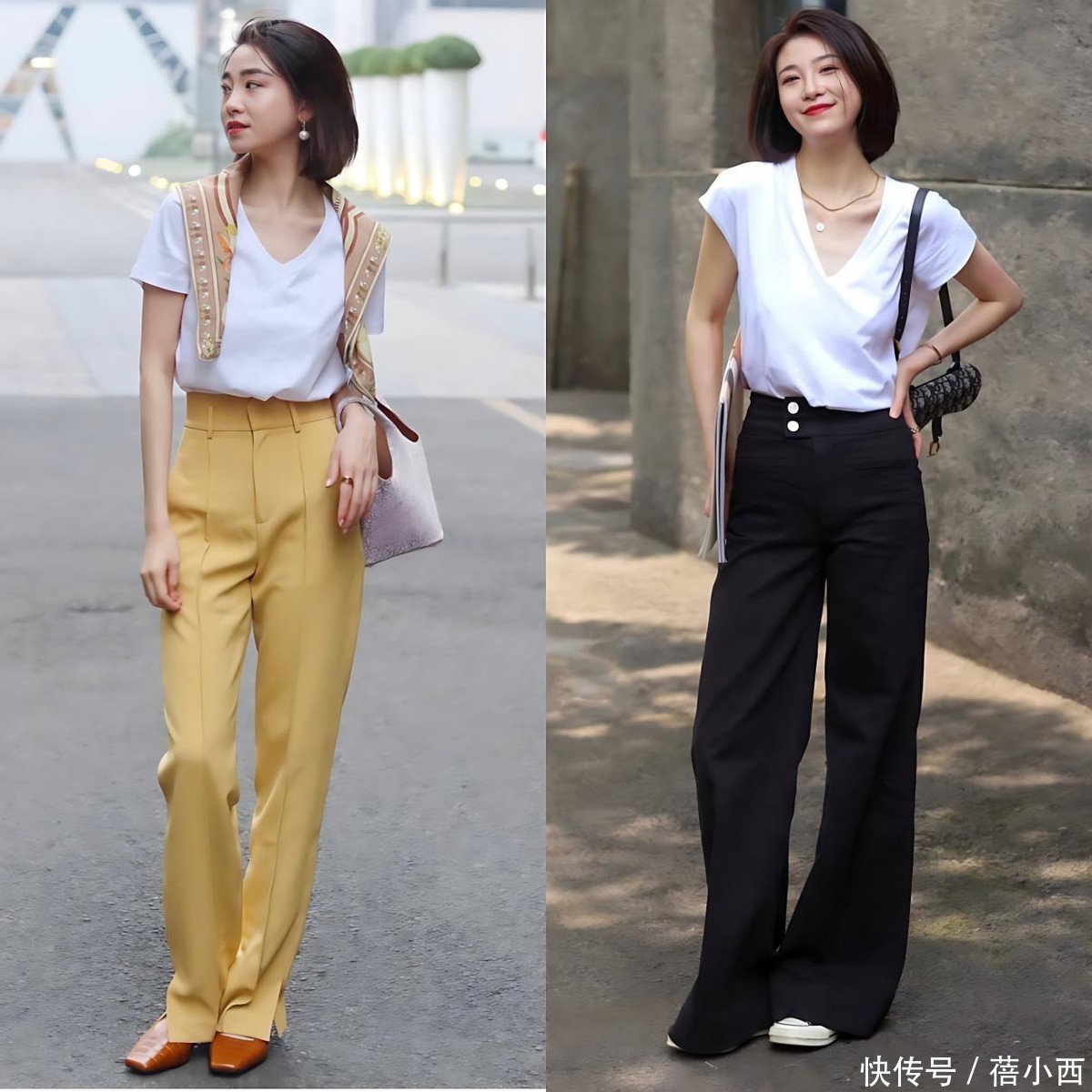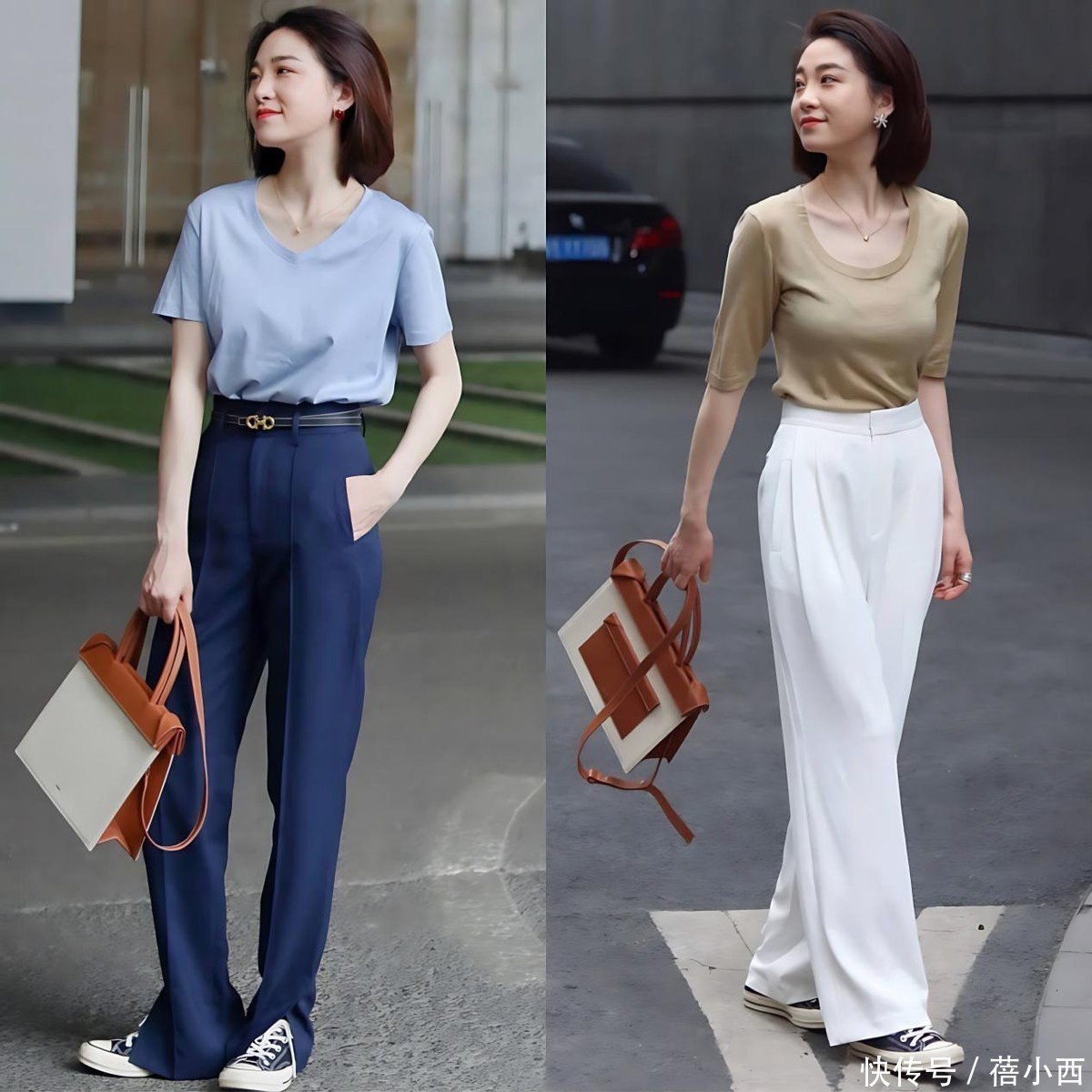短袖和阔腿裤的搭配,里面的门道可不少。首先是颜色搭配,同色系搭配永远不会出错,黑白灰等等经典的配色沉稳大气,通勤穿再合适不过。