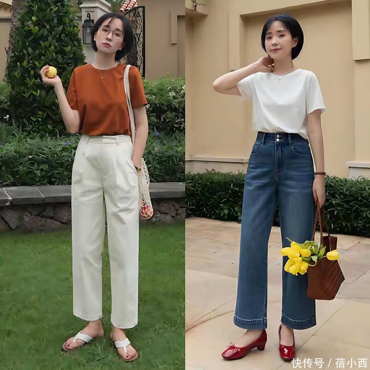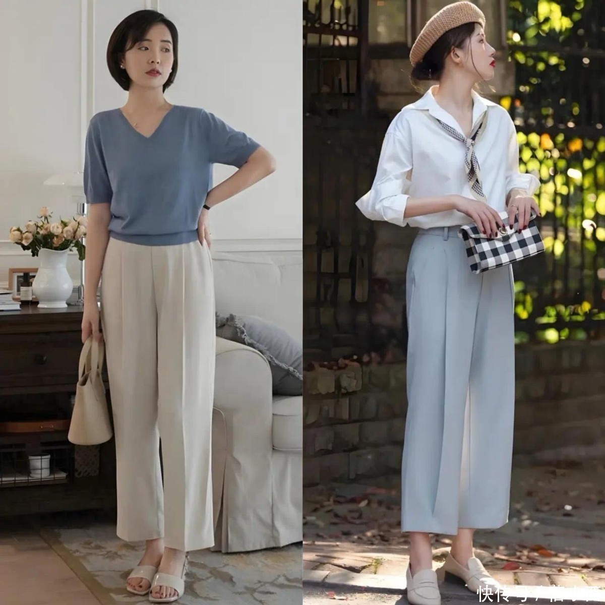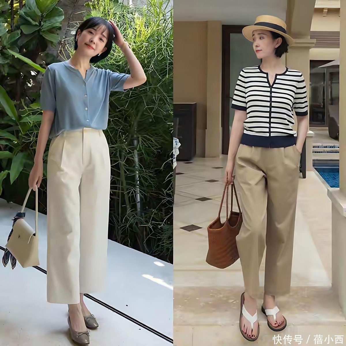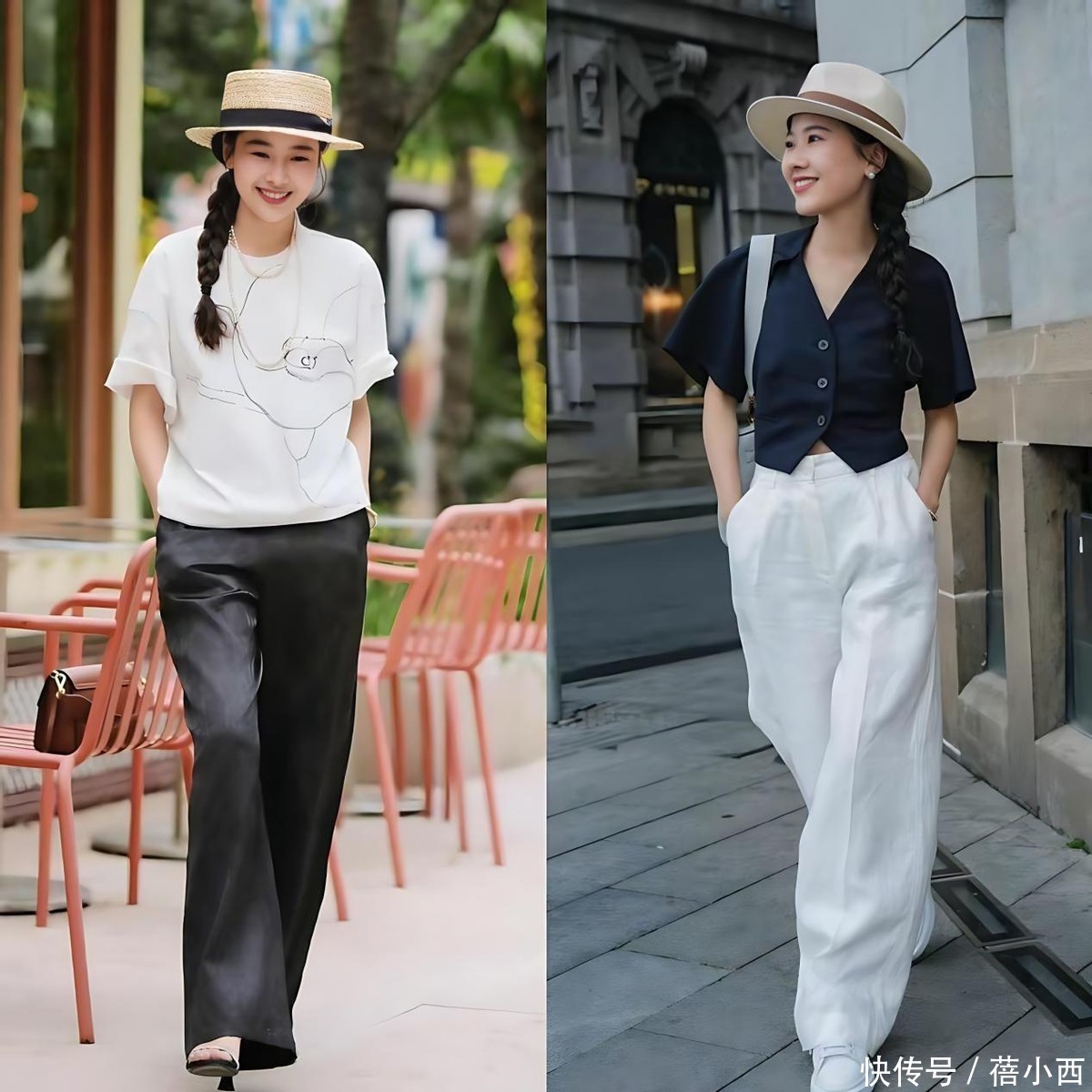面料的选择上,夏天一定要选透气的。亚麻阔腿裤就很不错,天然的材质自带清凉感,虽然容易起皱,但正是这种“皱皱”的质感,反而多了几分随性自然的味道。